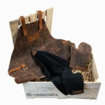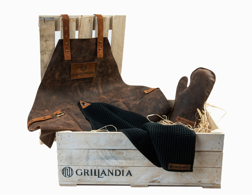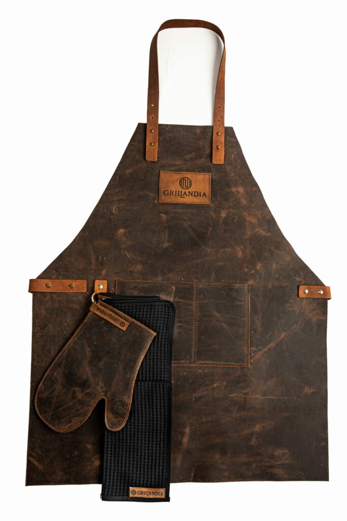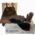 This barbecue outfit kit includes a 100% pull-up cowhide logo-printed, heat-resistant BBQ apron and a glove, complete with a 100% cotton waffle BBQ towel. The glove and the grill towel can be hung on the apron so they are always to hand when you need them while preparing and cooking. Truly lavish in style and highly durable, these Hungarian handcrafted products make a great set for a perfect gift combo. You can find a detailed description of the products in the accessories section.
