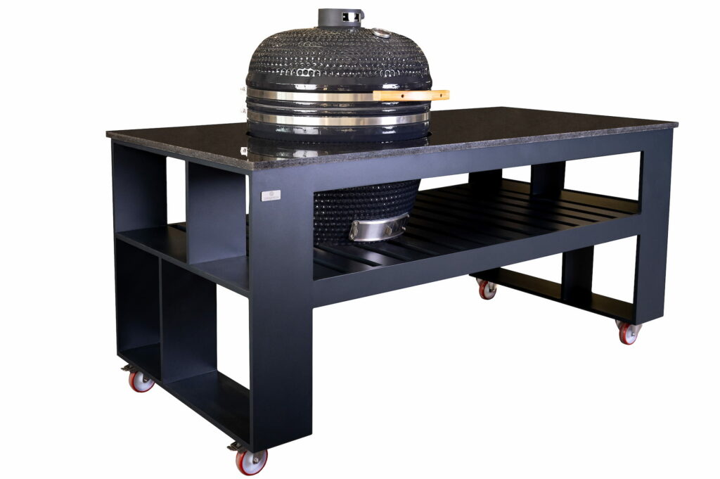 Egg Wagon is a compact and durable outdoor kitchen on wheels, ideal when the kitchen location needs to be changed frequently. Lockable castors make movement easy while ensuring stable positioning when in use. The high-quality Landmann Big L kamado grill provides stable heat, even cooking, and professional results every time. Despite its compact size, this model offers a comfortable and enjoyable grilling experience. The granite worktop combined with a thermowood shelf makes the Egg Wagon a practical outdoor kitchen where functionality meets Nordic design.